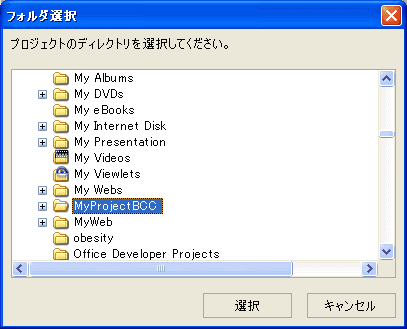 「MyProjectBCC」を選択して「選択」ボタンを押します。