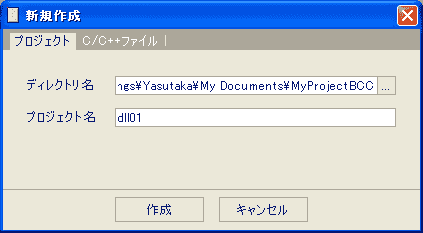 BCC Developerでマイドキュメントの中にあるMyProjectBCCにdll01というプロジェクトを作ります。