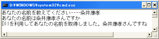これを実行するには、dll01.dllがcallmydll.exeから見える位置にある必要があります。では、実行してみましょう。