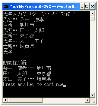 cout << "氏名入力でリターン・キーで終了" << endl;