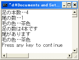 Animalクラスはコンストラクタで足の数、尾の数を尋ねてnLeg, nTailメンバに格納していました。
