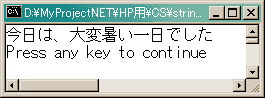 string str = "今日はよい天気ですが、あしたはどうなるかわかりません";