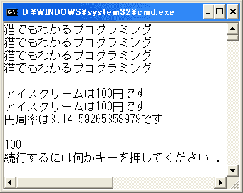 string str10 = "猫でも", str20 = "わかる", str30 = "プログラミング";