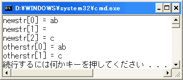 newstr配列には、空の文字列が含まれていますが、otherstr配列には含まれていません。