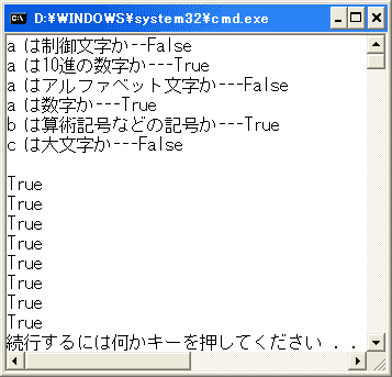 Console.WriteLine("c は大文字か---{0}", char.IsUpper(c));