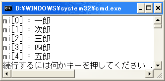 Console.WriteLine(strFormat, "五郎", mi["五郎"]);