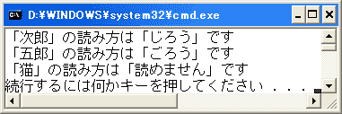 Console.WriteLine(strFormat, "次郎", mi["次郎"]);