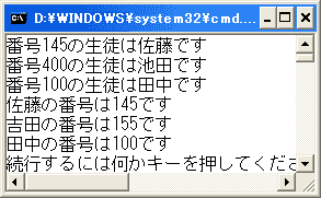 Console.WriteLine("田中の番号は{0}です", mi["田中"]);