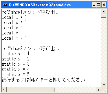 ローカル変数は、呼び出しごとに変数の値が振り出しに戻っています。