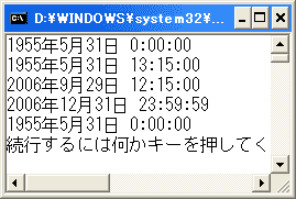 と、する方法もあります。どちらも時刻を指定しなければ、0時0分0秒に設定されます。DateTime構造体のコンストラクタには、多数のオーバーロードバージョンが存在します。 この章では、次の2つを知っていれば充分でしょう。