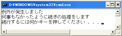 Console.WriteLine("何事もなかったように続きの処理をします");