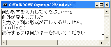 例外が発生しても、「finallyです」という文字列は表示されます。