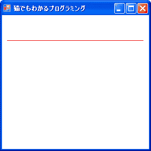 g.DrawLine(new Pen(Color.Red), 10, 50, 280, 50);では、(10, 50)と(280, 50)を結ぶ直線を描画します。ペンは単純な赤色のペンです。