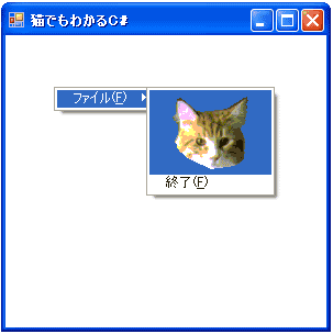 MenuItem miFile = new MenuItem("ファイル(&F)");