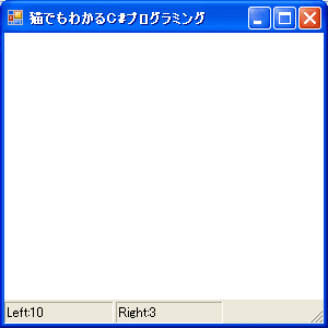 左ボタンが押されたときは、no1を1増やして、sb.Panels[0]にクリック数を表示します。