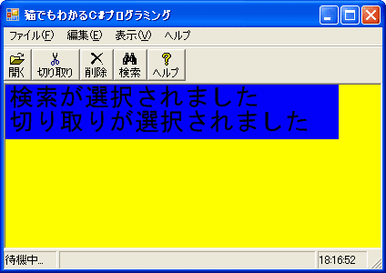 メニュー項目が実行されたり、ボタンを押したりすると、その内容が表示されます。