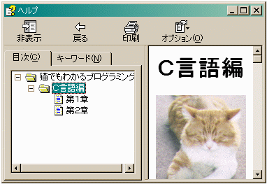 プログラムにヘルプを付けるとプログラムが立派に見えます(???)。また、HTMLヘルプはアプリケーションのヘルプとしてだけではなく、それ自体で いろいろ便利な使い方もできます。