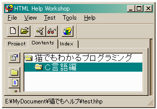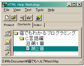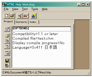 「Project」タブを押してContents file=***.hhcという記述が増えていることを 確認してください。