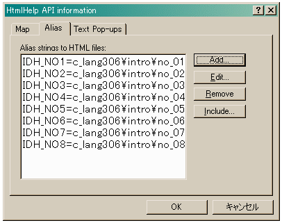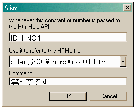 HtmlHelp API Informationダイアログに戻るとAliasタグに追加した