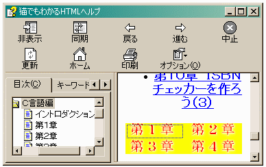 左の図の黄色い長方形の中に描画されている各章の部分をクリックすると