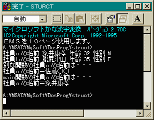 と、いう風にあとから、社員dの構造体変数を追加宣言することもできます。 また、構造体テンプレートを省略して宣言してもかまいません。ただしこの場合 あとから、構造体変数を追加宣言できなくなります。また、構造体変数を省略して あとから宣言することもできます。struct shain d;