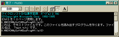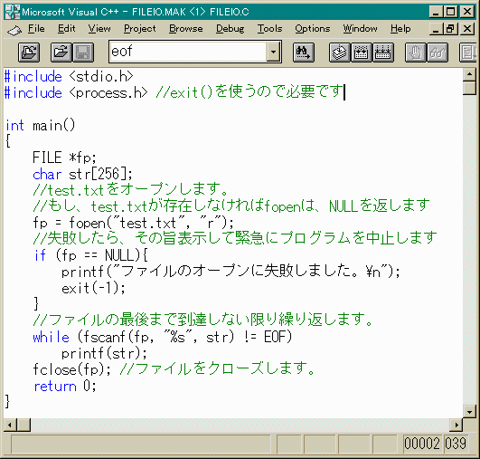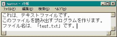 では、早速「test.txt」を読み出すプログラムを作りましょう。