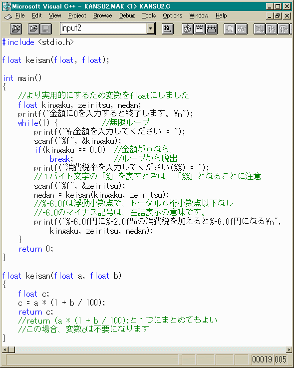 では、このプログラムを正しく直してみましょう。