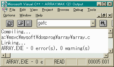 としたらどうでしょうか。以前にも少し解説しましたが 文字列の最後には、ヌル文字(\0)がつきます。 従って上の例では、a[0]='A', a[1]='B', a[2]='C', a[3]='D', a[4]='\0'と なります。また、文字列を表すのに次のような表し方もありましたね。static char a[] = "ABCD";
