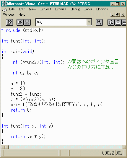また、関数へのポインタはDOSのプログラムではあまり使いません。