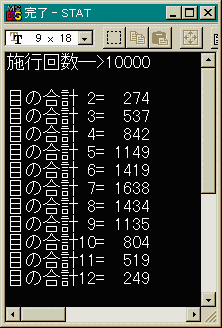 1万回振って調べるのは人間では不可能です。(途中で飽きる)