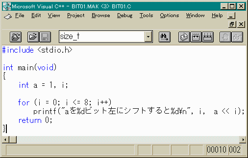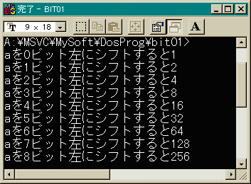これは、10進数で4ですね。要するに、1ビット左に移動 する事により2倍、2倍とどこかの布団の宣伝みたいになっていきます。 このように、ビットを移動させる演算子をシフト演算子といいます。 左にシフトさせるのは「<<」右にシフトさせるのは「>>」を 使います。0000000000000100