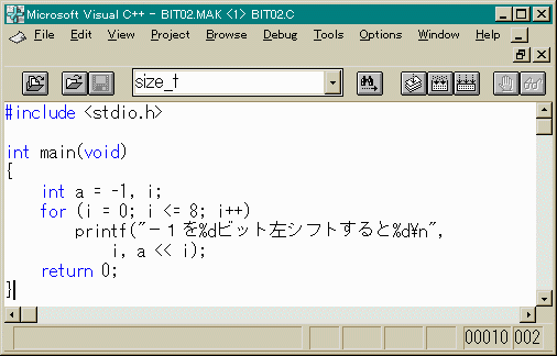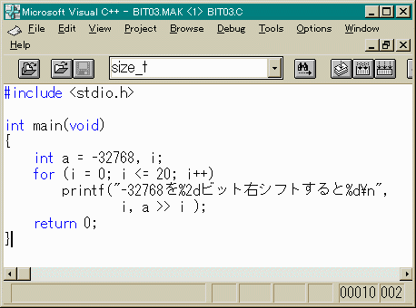 たとえば、int型が2バイトとすればこれは、16ビットです。