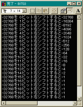 15ビット以上右シフトしても-1のままです。