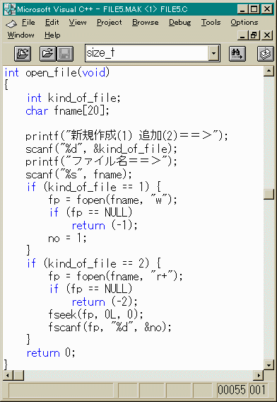 ですね。ファイルの読み書きしている 場所を移動させる関数です。 最初の引数はFILE構造体へのポインタです。 次の引数は、基準点からのバイト数です。 これが、longであることに注意してください。 最後の引数は 基準点を指定します。0ならファイルの先頭、1なら ファイルポインタの位置(読み書きしている位置)、 2ならファイルの最後からという意味になります。 また、これらをSEEK_SET, SEEK_CUR, SEEK_ENDという定数で 表すこともあります。#include <stdio.h> int fseek(FILE *stream,long offset,int orign);