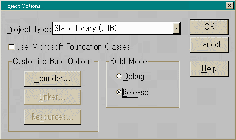 メニューバーから「Options」「Project...」を選択して下さい。 「Build Mode」は「Release」にしておいて下さい。