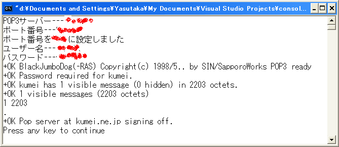 printf("POP3サーバー---");