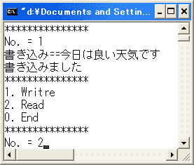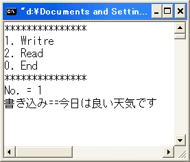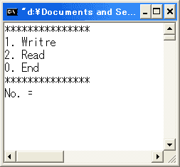 メニューが出るので、書き込みか、読み出しか、終了かを選択します。