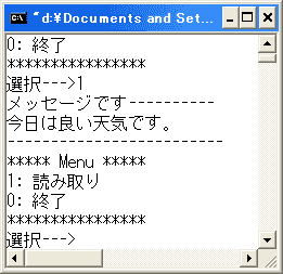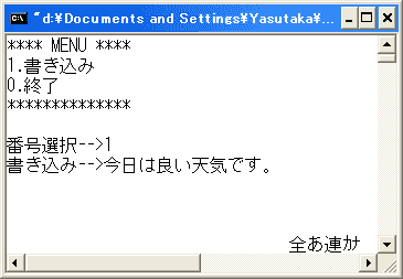 printf("1.書き込み\n");