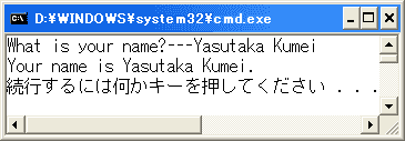 実行結果は、gets01.cの場合と同じです。特別難しくはありませんが、始めてコンパイルしたとき警告やらエラーが 出るとびっくりしてしまいますね。