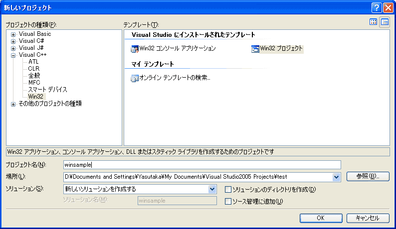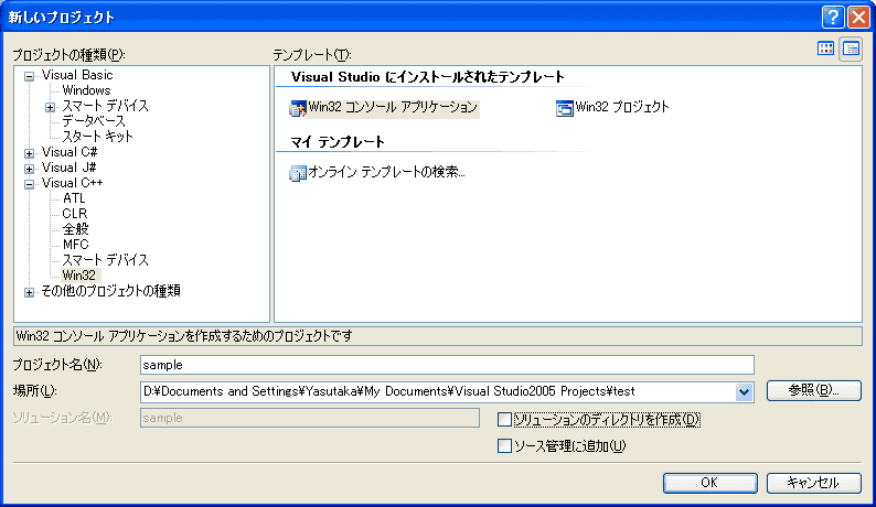 場所は、あらかじめマイドキュメントの中に「Visual Studio2005 Projects」