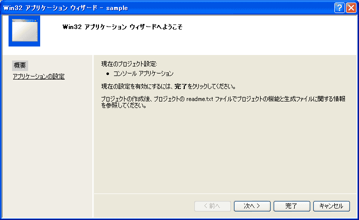 「OK」ボタンを押すと「Win32アプリケーションウィザード」というのが出てきます。