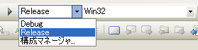 デバッガを使わないのであれば、ツールバーの「ソリューションの構成」を「Release」に しておきます。