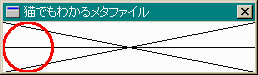 WM_PAINTメッセージのところでは、背景の対角線を描画して メタファイルを再生します。