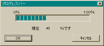 OKボタンが押されたら、iProg(プログレスバーの位置を 記憶しておく変数)を0にします。0にしておかないと このプログラムの場合、iProgはグローバル変数なので次回 プログレスバーが出たときに0から始まらなくなります。