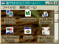 見かけ上の違いは、スクロールつまみの大きさです。 32ビット版になってからスクロールつまみの大きさは、現在表示されている 内容が全体のどの位に当たるかを表しています。たとえば、ある文書を 表示しているときその大部分がクライアント領域に表示されているならば スクロールつまみの大きさは相当大きく(長く)なります。 また、現在表示されている部分が全体のほんの一部である場合はスクロールつまみも 小さくなります。ユーザーは、つまみの大きさを見て、見えない部分が どの位あるのかを知ることができます。(しかし、筆者の周りの人たちを見ていると 気が付いている人は少ない!)