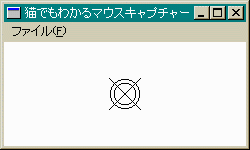 ここも、いつもと同じです。//ウィンドウの生成 BOOL InitInstance(HINSTANCE hInstance, int nCmdShow) { HWND hWnd; hWnd = CreateWindow(szClassName, "猫でもわかるマウスキャプチャー",//タイトルバーにこの名前が表示されます WS_OVERLAPPEDWINDOW, //ウィンドウの種類 CW_USEDEFAULT, //X座標 CW_USEDEFAULT, //Y座標 250, //幅 150, //高さ NULL,//親ウィンドウのハンドル、親を作るときはNULL NULL,//メニューハンドル、クラスメニューを使うときはNULL hInst,//インスタンスハンドル NULL); if (!hWnd) return FALSE; hInst = hInstance; //インスタンスハンドルを保存 ShowWindow(hWnd, nCmdShow); UpdateWindow(hWnd); return TRUE; }