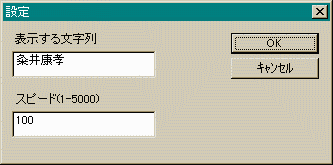 WM_INITDIALOGメッセージのところで改めてINIファイルから 前回の設定を読み出しています。そして、エジットボックスに 表示しています。スピードも文字列としてエジットボックスに 表示している点に注意してください。