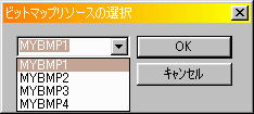 左のようなダイアログが出てきます。表示したいビットマップリソースを