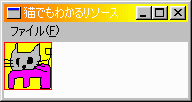 このへんはいつもと同じです。WinMain関数の中でインスタンスハンドルを グローバル変数にコピーしている点に注意して下さい。// res01.cpp #ifndef STRICT #define STRICT #endif #include <windows.h> #include <windowsx.h> #include "resource.h" LRESULT CALLBACK WndProc(HWND, UINT, WPARAM, LPARAM); LRESULT CALLBACK MyDlgProc(HWND, UINT, WPARAM, LPARAM); ATOM InitApp(HINSTANCE); BOOL InitInstance(HINSTANCE, int); int ReadRes(HWND); char szClassName[] = "res01"; //ウィンドウクラス char szBMPName[64]; //ビットマップリソース名 HINSTANCE hInst; HPALETTE hPalette; int nClr; BOOL bLoad = FALSE; int WINAPI WinMain(HINSTANCE hCurInst, HINSTANCE hPrevInst, LPSTR lpsCmdLine, int nCmdShow) { MSG msg; hInst = hCurInst; //グローバル変数にコピー if (!InitApp(hCurInst)) return FALSE; if (!InitInstance(hCurInst, nCmdShow)) return FALSE; while (GetMessage(&msg, NULL, 0, 0)) { TranslateMessage(&msg); DispatchMessage(&msg); } return msg.wParam; } //ウィンドウ・クラスの登録 ATOM InitApp(HINSTANCE hInst) { WNDCLASSEX wc; wc.cbSize = sizeof(WNDCLASSEX); wc.style = CS_HREDRAW | CS_VREDRAW; wc.lpfnWndProc = WndProc; //プロシージャ名 wc.cbClsExtra = 0; wc.cbWndExtra = 0; wc.hInstance = hInst; //インスタンス wc.hIcon = LoadIcon(NULL, IDI_APPLICATION); wc.hCursor = LoadCursor(NULL, IDC_ARROW); wc.hbrBackground = (HBRUSH)GetStockObject(WHITE_BRUSH); wc.lpszMenuName = "MYMENU"; //メニュー名 wc.lpszClassName = (LPCSTR)szClassName; wc.hIconSm = LoadIcon(NULL, IDI_APPLICATION); return (RegisterClassEx(&wc)); } //ウィンドウの生成 BOOL InitInstance(HINSTANCE hInst, int nCmdShow) { HWND hWnd; hWnd = CreateWindow(szClassName, "猫でもわかるリソース", //タイトルバーにこの名前が表示されます WS_OVERLAPPEDWINDOW, //ウィンドウの種類 CW_USEDEFAULT, //X座標 CW_USEDEFAULT, //Y座標 CW_USEDEFAULT, //幅 CW_USEDEFAULT, //高さ NULL, //親ウィンドウのハンドル、親を作るときはNULL NULL, //メニューハンドル、クラスメニューを使うときはNULL hInst, //インスタンスハンドル NULL); if (!hWnd) return FALSE; ShowWindow(hWnd, nCmdShow); UpdateWindow(hWnd); return TRUE; }