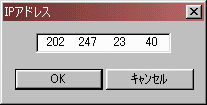 メニューの「オプション」「IPアドレスを入力」(IDM_IP)が来たら ダイアログボックスを表示します。